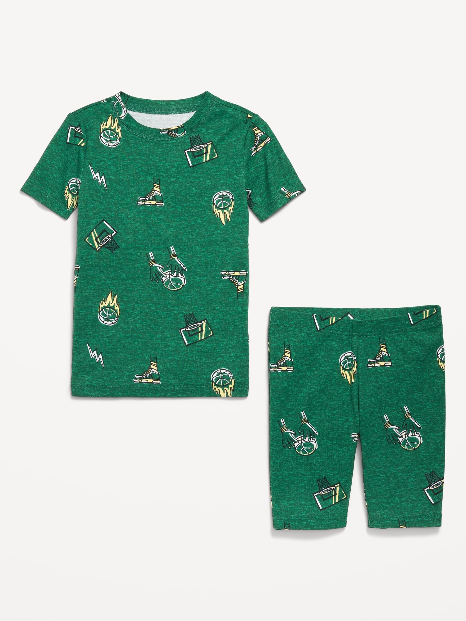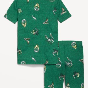 Printed Snug-Fit Pajama Set for Boys: crew neck, short sleeves, matching pajama shorts, elasticized waistband, all-over print, #744977
