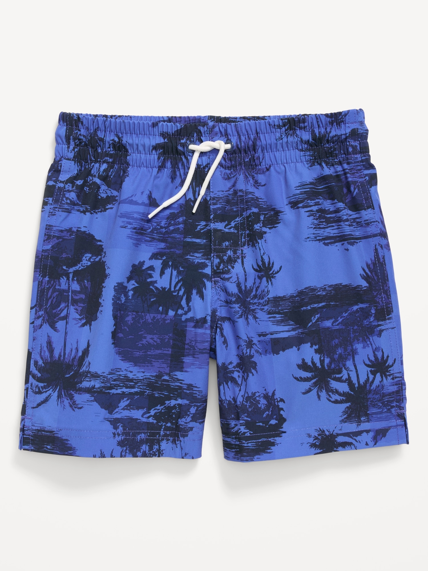 Printed Swim Shorts for Boys: elasticized waistband, adjustable drawstring, faux fly, patch pocket at back right, built-in mesh briefs, #861691