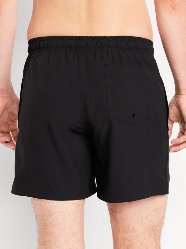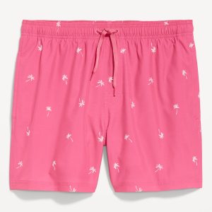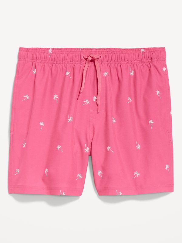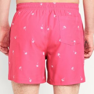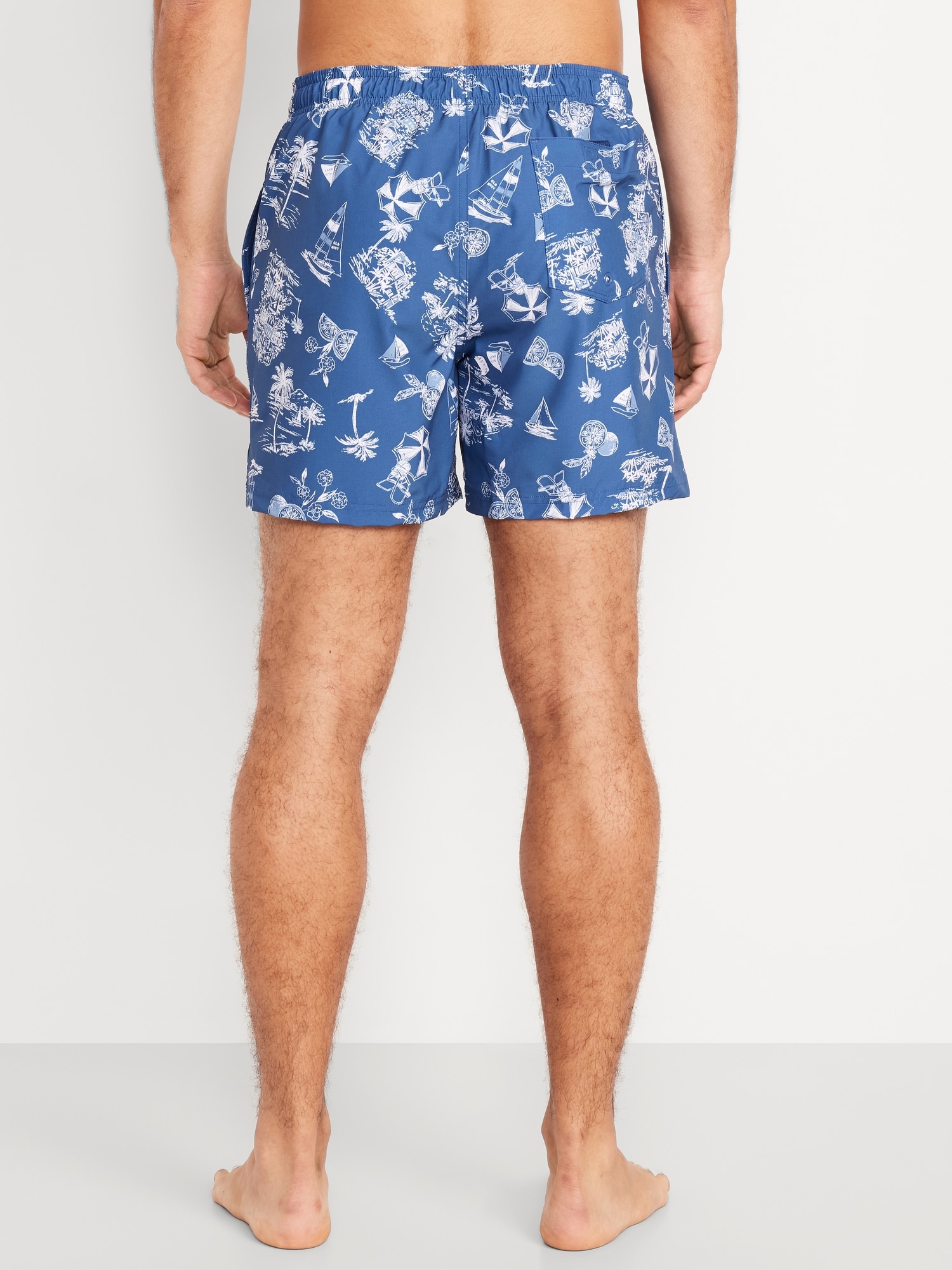 Printed Swim Trunks — 5-inch inseam: elastic-drawstring waistband, on-seam pockets, back pocket with grommet drain, built-in mesh briefs, pull-on style, all-over cocktail print, #766289