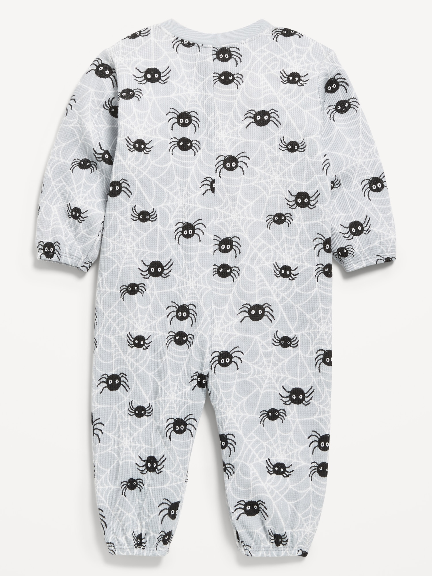 Printed Waffle-Knit Henley One-Piece for Baby: crew neck, two-button henley placket, long sleeves, hidden snaps along inseam, #804450