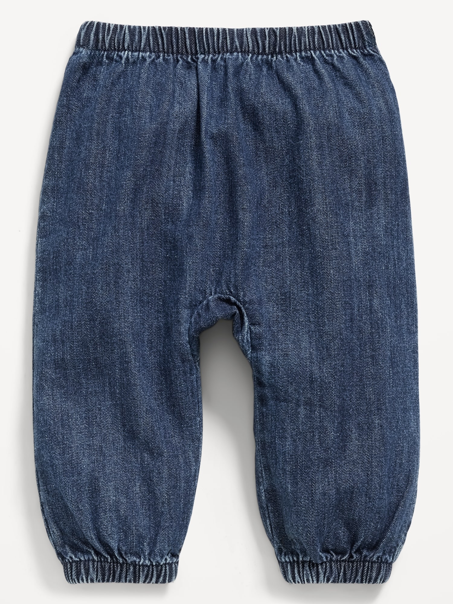 Pull-On Chambray Pants for Baby: elasticized waistband, patch pocket at back, knee patches, elasticized leg cuffs, easy pull-on style, #802715