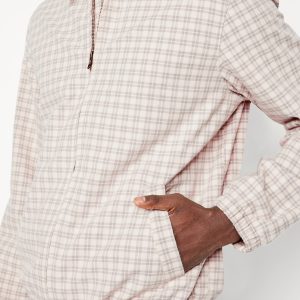 Relaxed Zip Jacket: spread collar, long sleeves, full-zip front, welt pockets, gingham print, elastic cuffs and hem, #686458