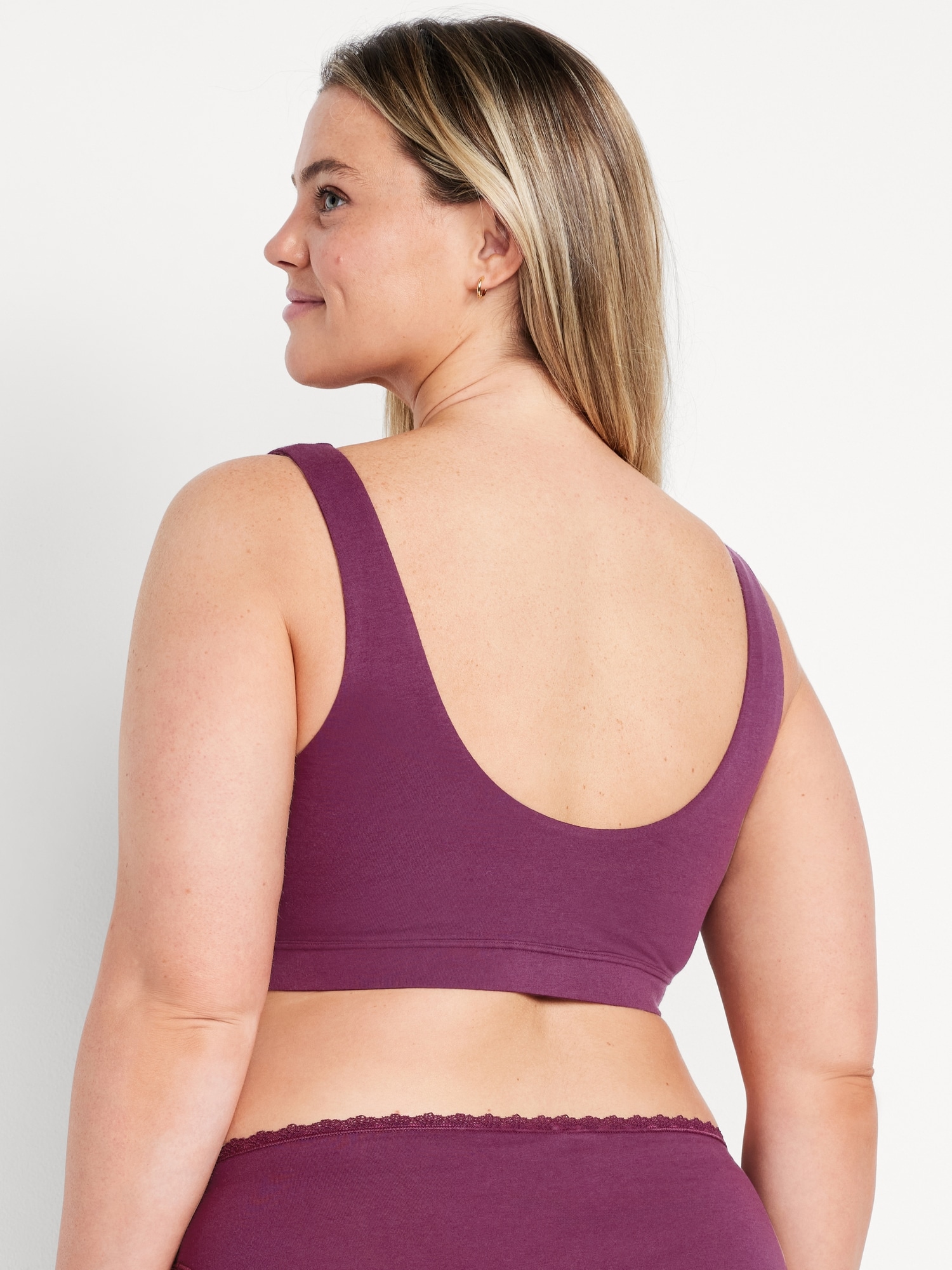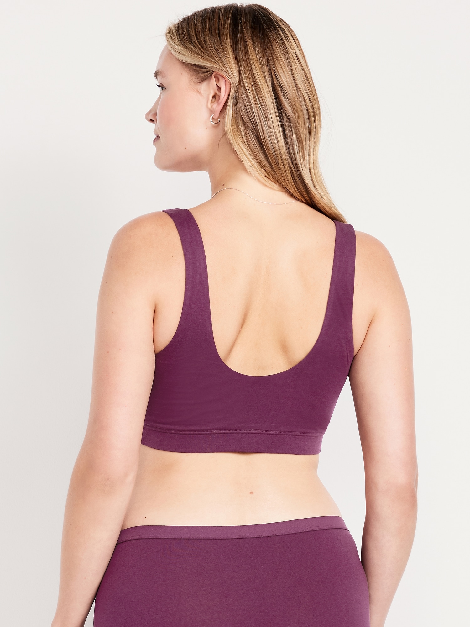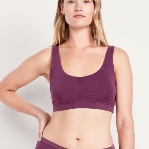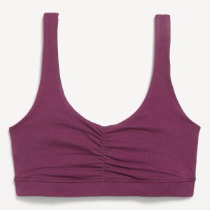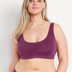 Ruched Cotton Bralette: v-neck, wide straps, front ruching, elastic hem, #800554