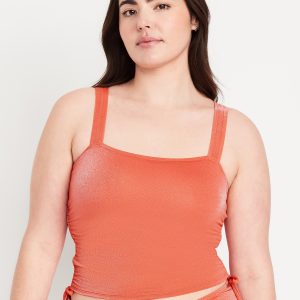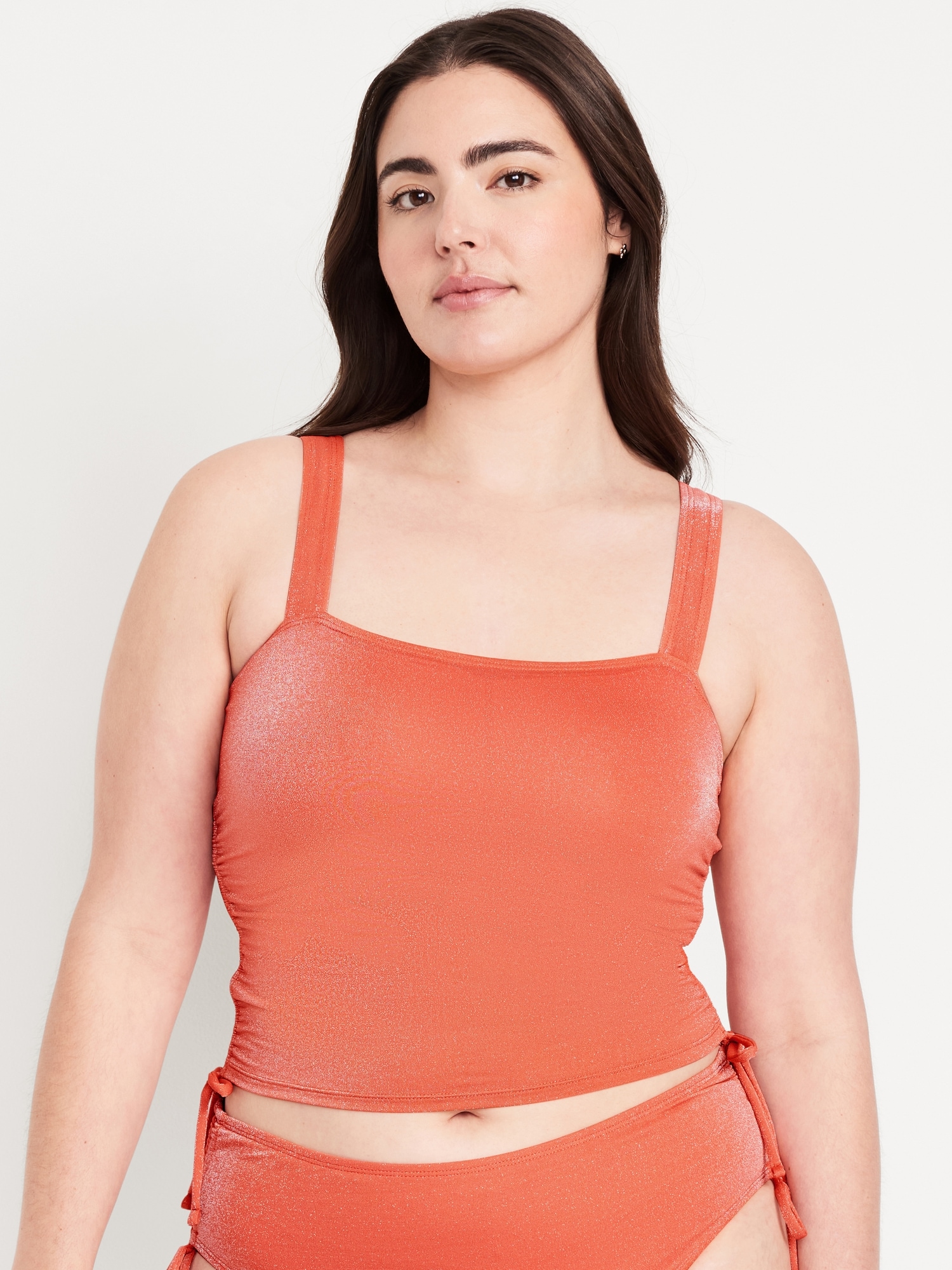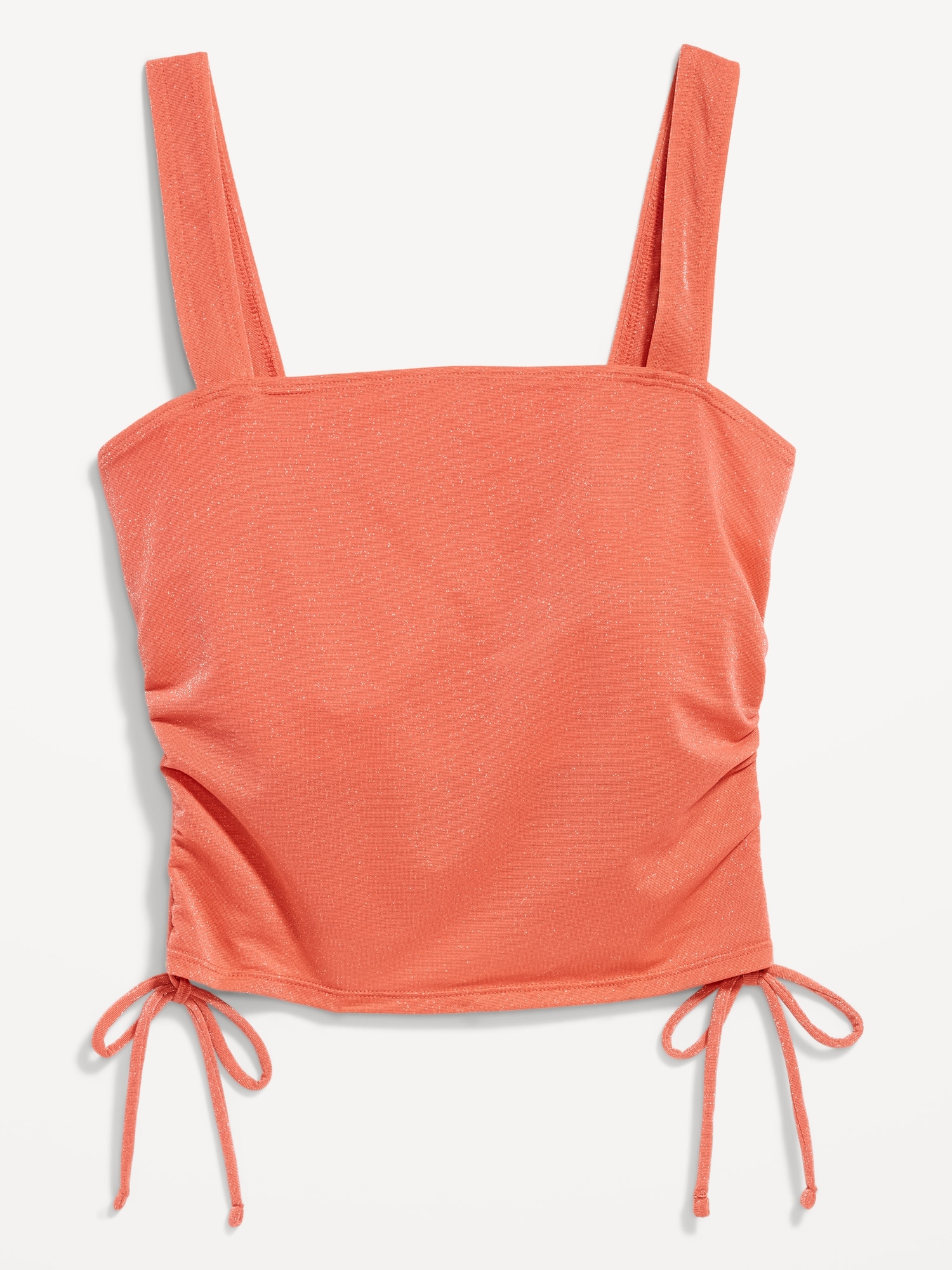 Ruched Longline Shine Swim Top: wide straps, removable pads, ruched sides, side-tie hem, why blend in when you can shine?, #660893