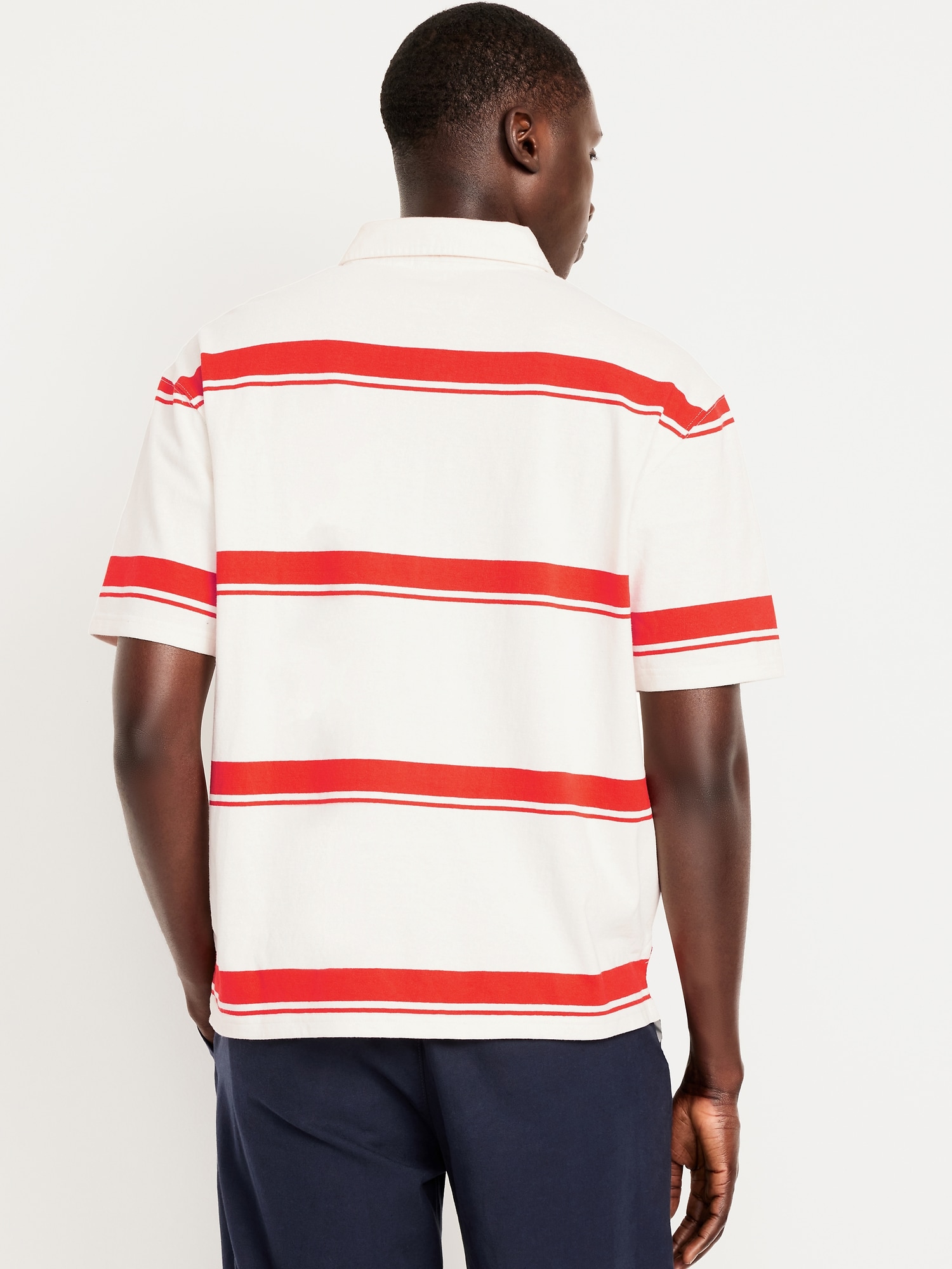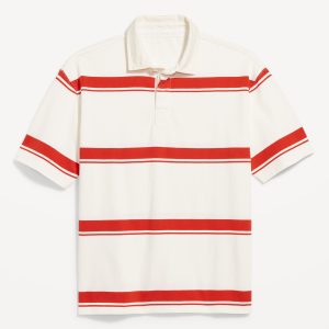 Rugby Stripe Polo: spread collar, short sleeves, buttoned placket, contrasting rugby-style stripes, vented sides, #762339