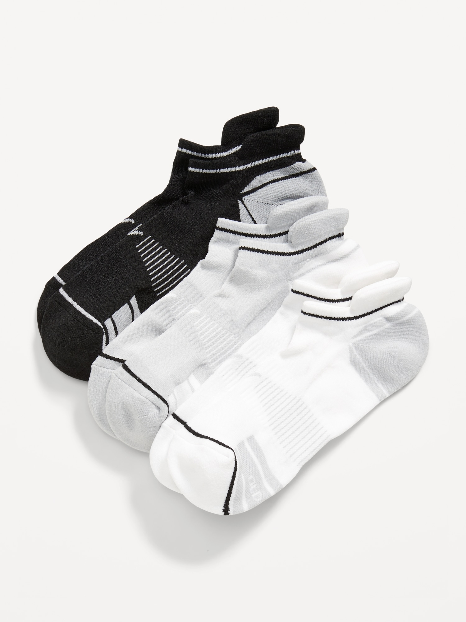 Running Ankle Socks 3-Pack for Women: pack includes 3 pairs of running ankle socks, no-slip heel designed for running, arch support, zoned cushioning, notched toe seams for comfort, go-dry keeps you cool, #772118