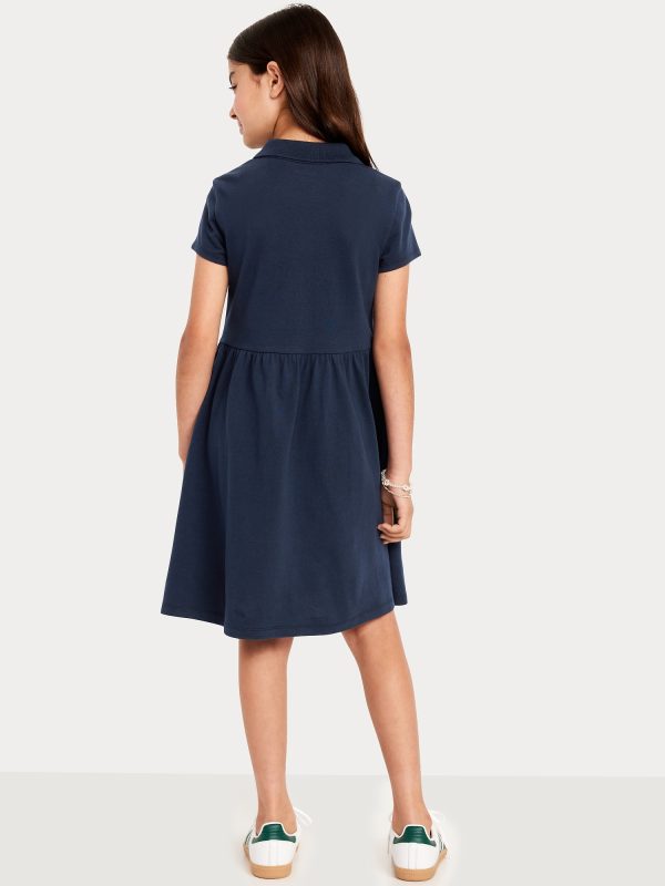 School Uniform Fit and Flare Pique Polo Dress for Girls