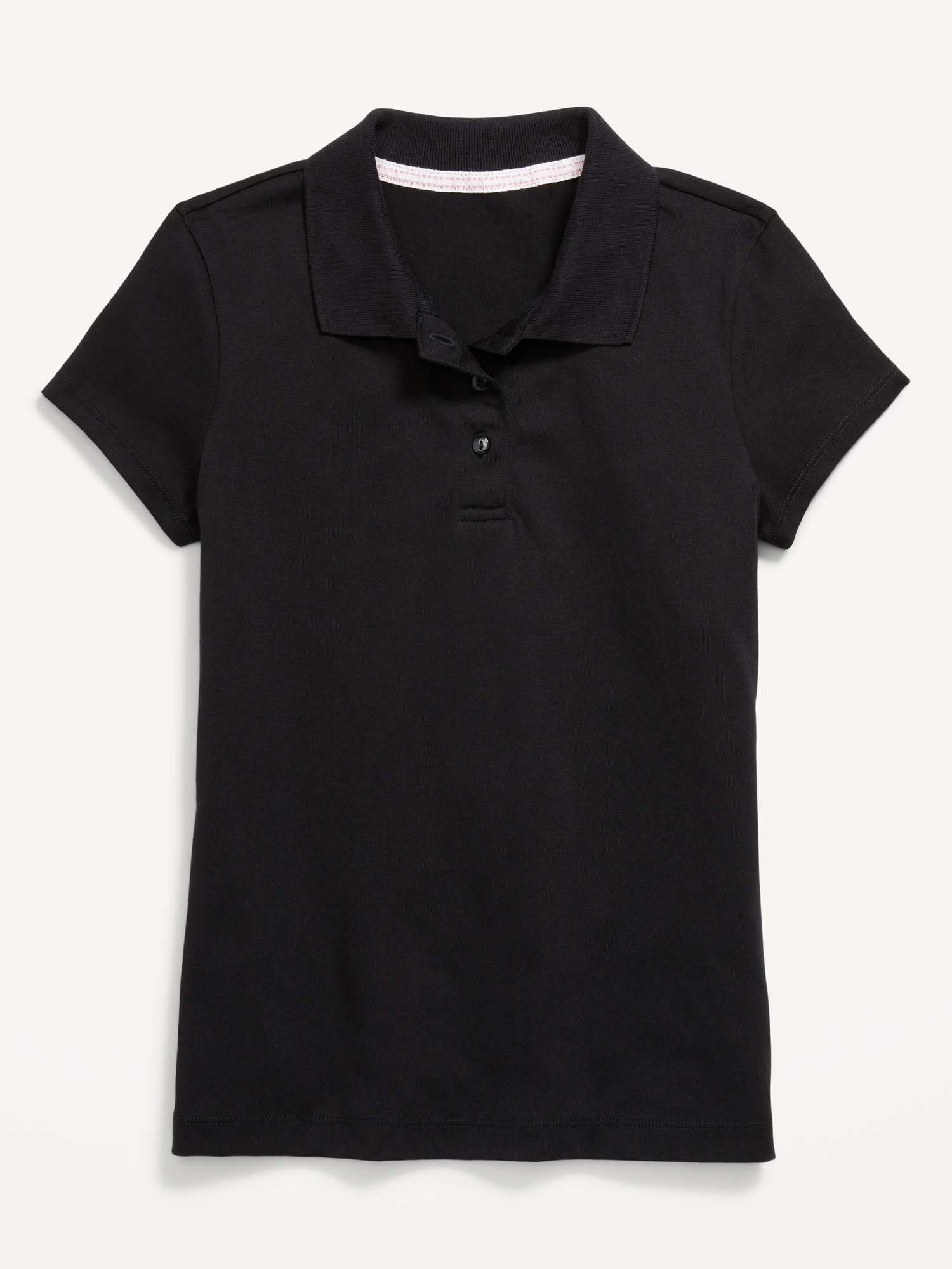 School Uniform Jersey-Knit Polo Shirt for Girls: rib-knit collar, short sleeves, three-button placket, vented sides at hem, #766960