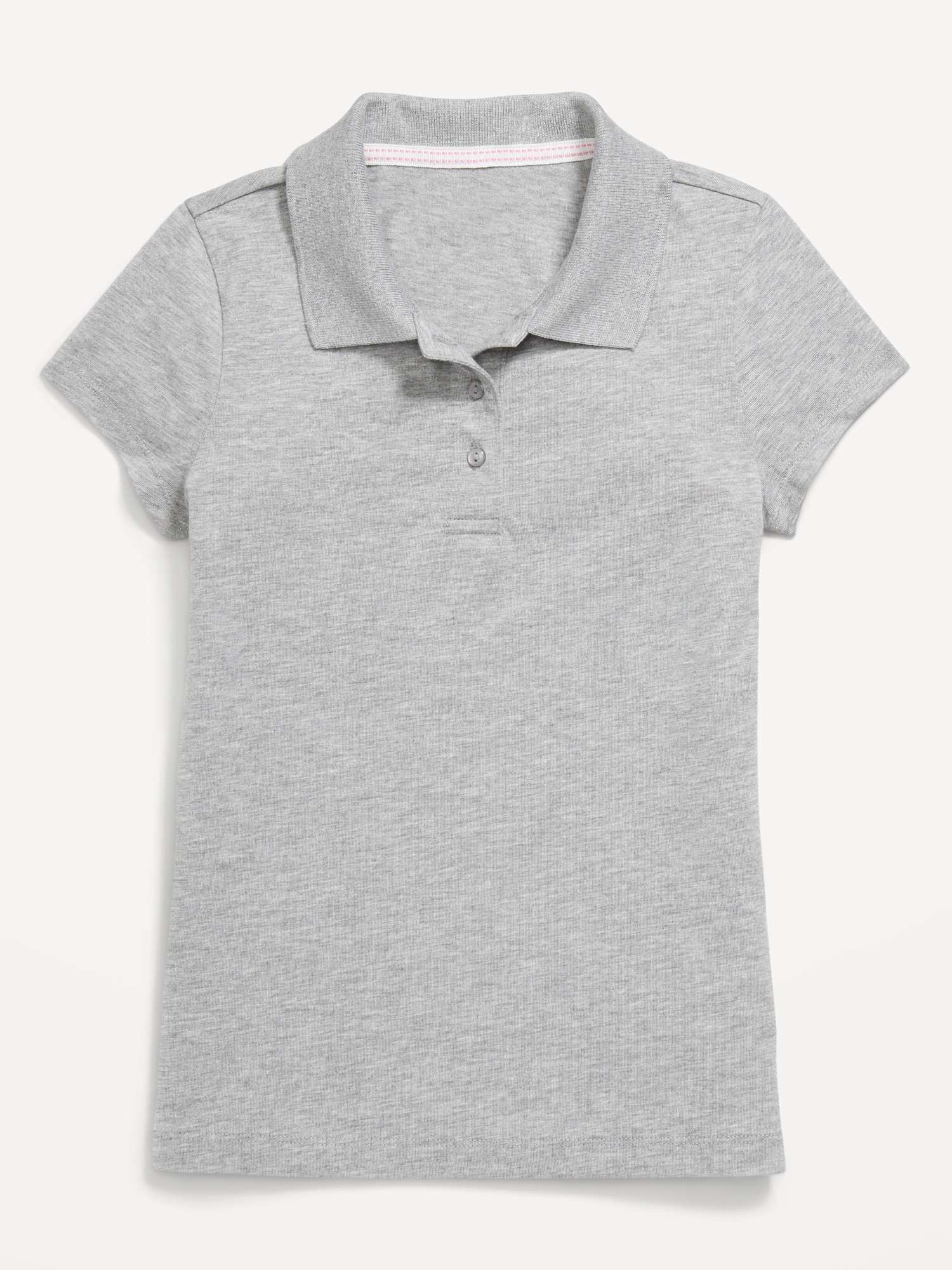 School Uniform Jersey-Knit Polo Shirt for Girls: rib-knit collar, short sleeves, three-button placket, vented sides at hem, #766960