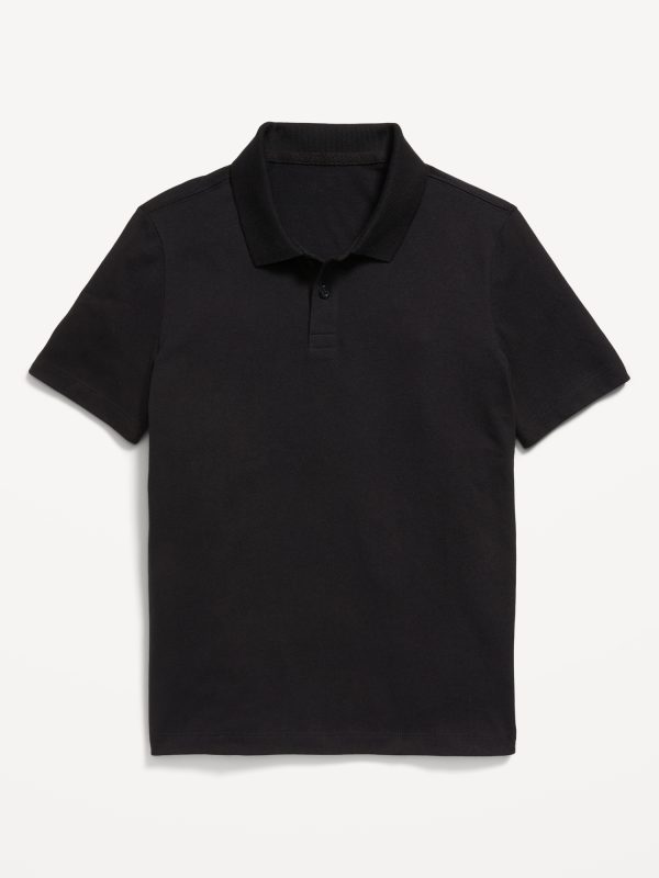 School Uniform Jersey Polo Shirt for Boys: rib-knit collar, two-button placket, short sleeves, #621877