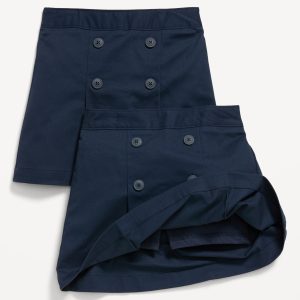 School Uniform Pleated Skort 2-Pack for Girls: built-in shorts, elasticized waistband, decorative buttons at front, #766637