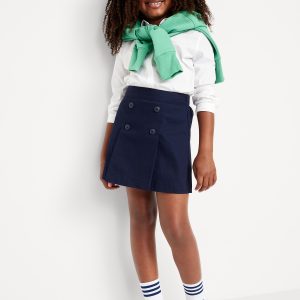 School Uniform Skort for Girls: built-in shorts, elasticized back, pleated, decorative buttons at front, easy pull-on style, #766645