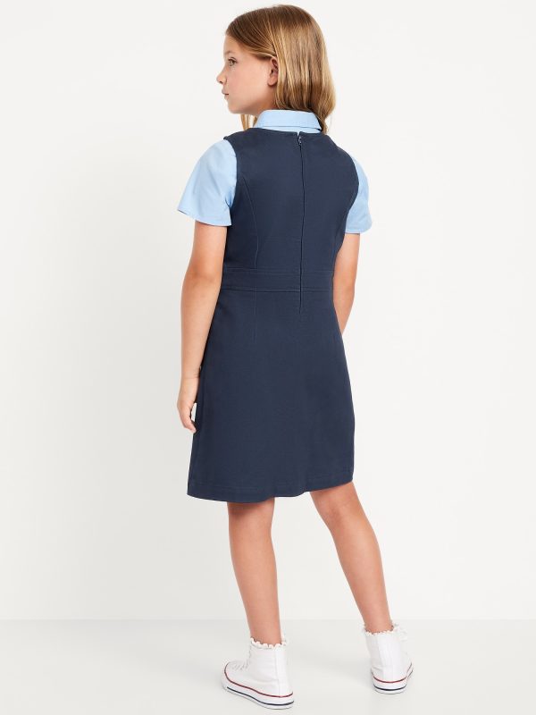 School Uniform Sleeveless Pleated Dress for Girls: scoop neck, sleeveless, full length zipper at back, decorative button tabs at waist, pleated skirt, #766641