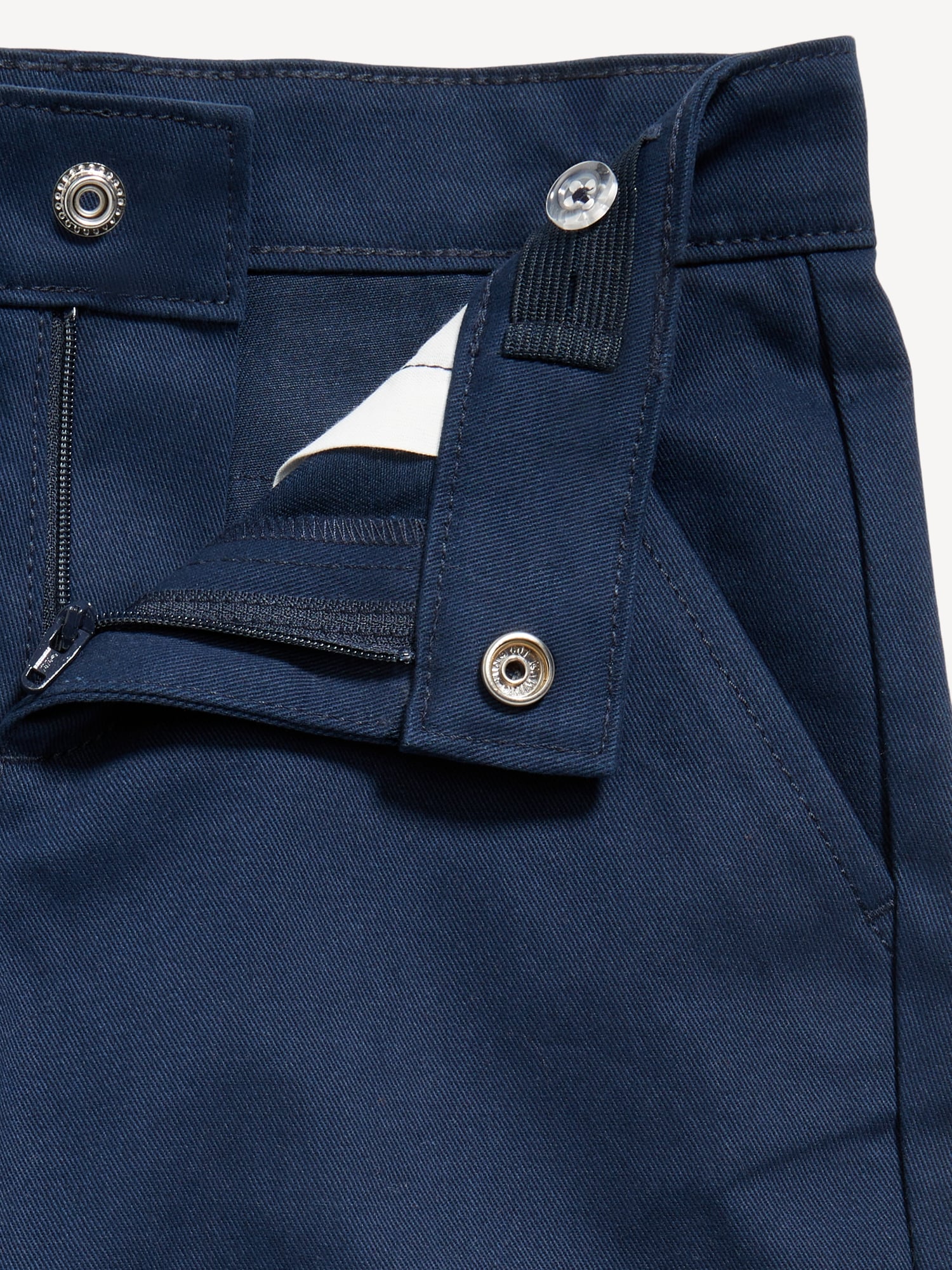 School Uniform Straight Leg Pants for Girls: interior adjustable waistband, sizes 5-8 snap-decorative button closure, sizes 10-20 regular button closure, zip fly, slant pockets in front, decorative welt pockets in back, #767121