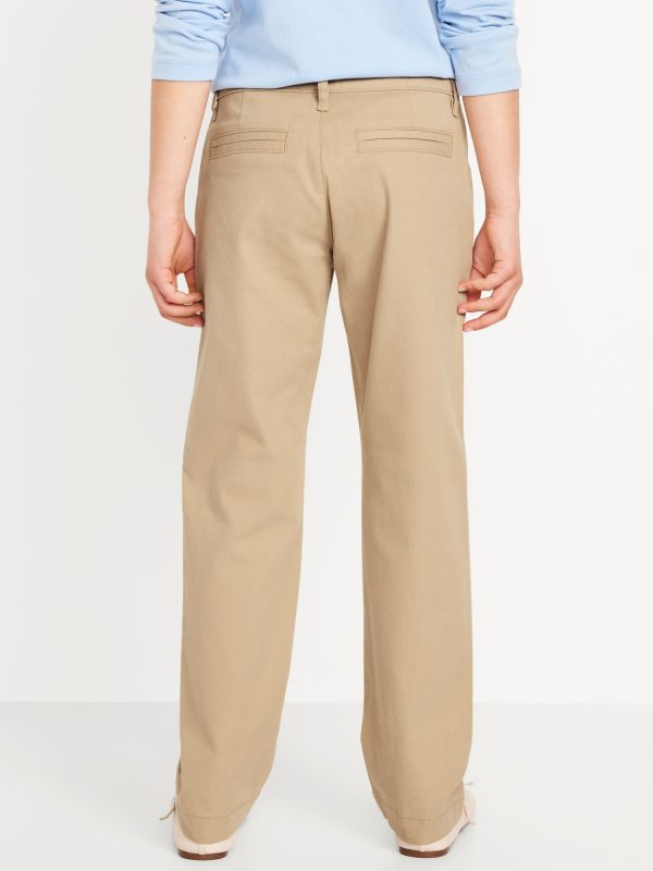 School Uniform Straight Leg Pants for Girls: interior adjustable waistband, sizes 5-8 snap-decorative button closure, sizes 10-20 regular button closure, zip fly, slant pockets in front, decorative welt pockets in back, #767121