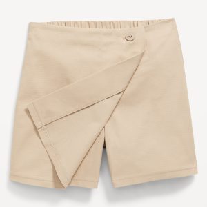 School Uniform Wrap-Front Skort for Girls: built-in shorts, elasticized back waist, decorative buttons, easy pull-on style, online exclusive, #766640