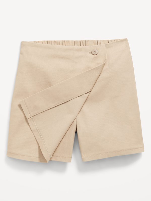 School Uniform Wrap-Front Skort for Girls: built-in shorts, elasticized back waist, decorative buttons, easy pull-on style, online exclusive, #766640