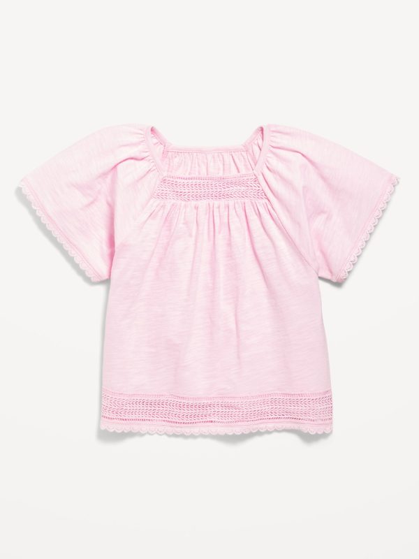 Short Flutter-Sleeve Crochet-Trim Top for Girls