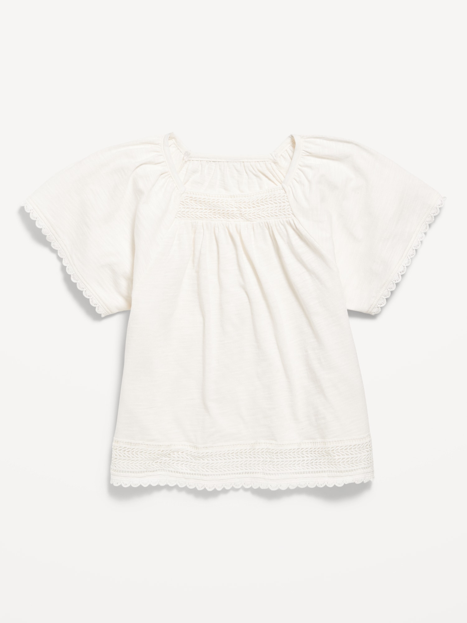 Short Flutter-Sleeve Crochet-Trim Top for Girls