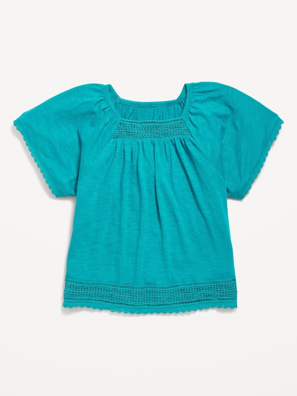 Short Flutter-Sleeve Crochet-Trim Top for Girls