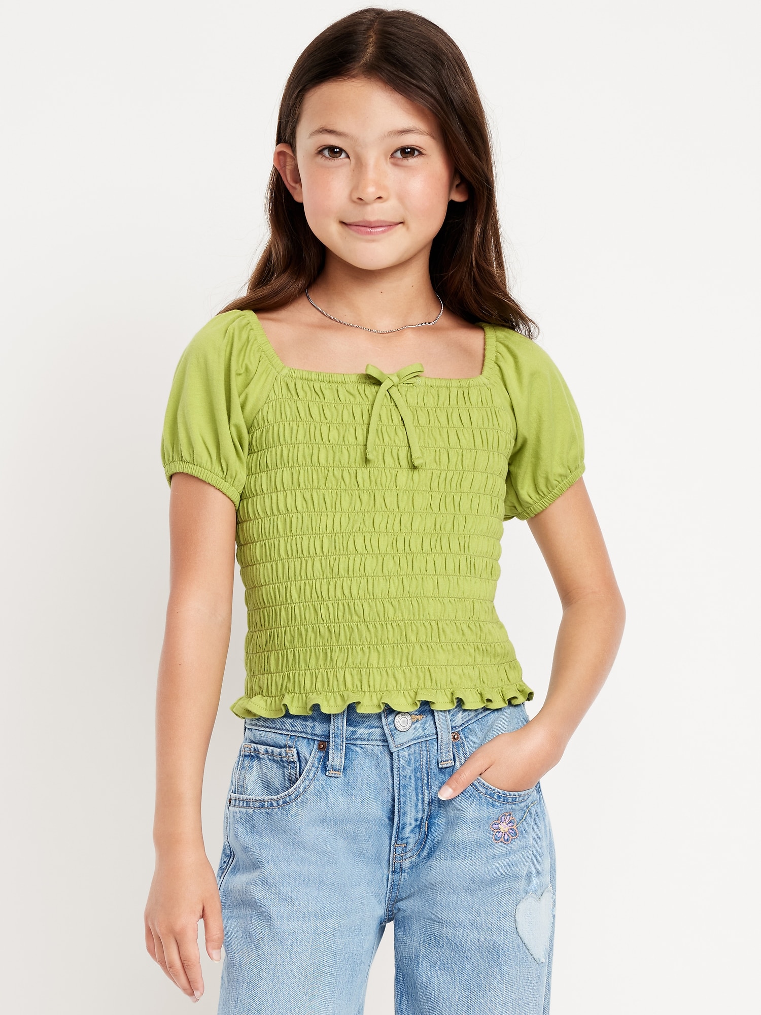 Short Puff-Sleeve Smocked Top for Girls: square neckline, short puff sleeves, smocked bodice, #767944