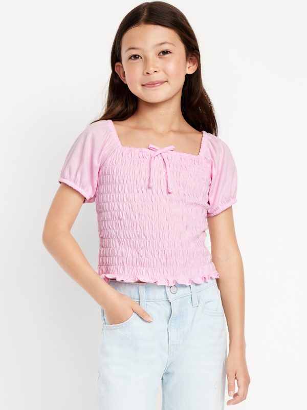 Short Puff-Sleeve Smocked Top for Girls