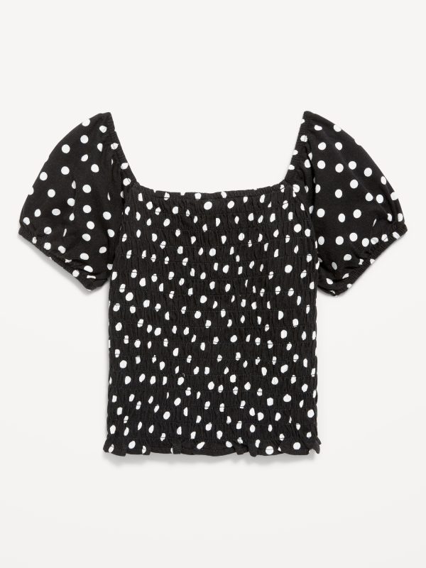 Short Puff-Sleeve Smocked Top for Girls: square neckline, short puff sleeves, smocked bodice, #767944