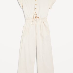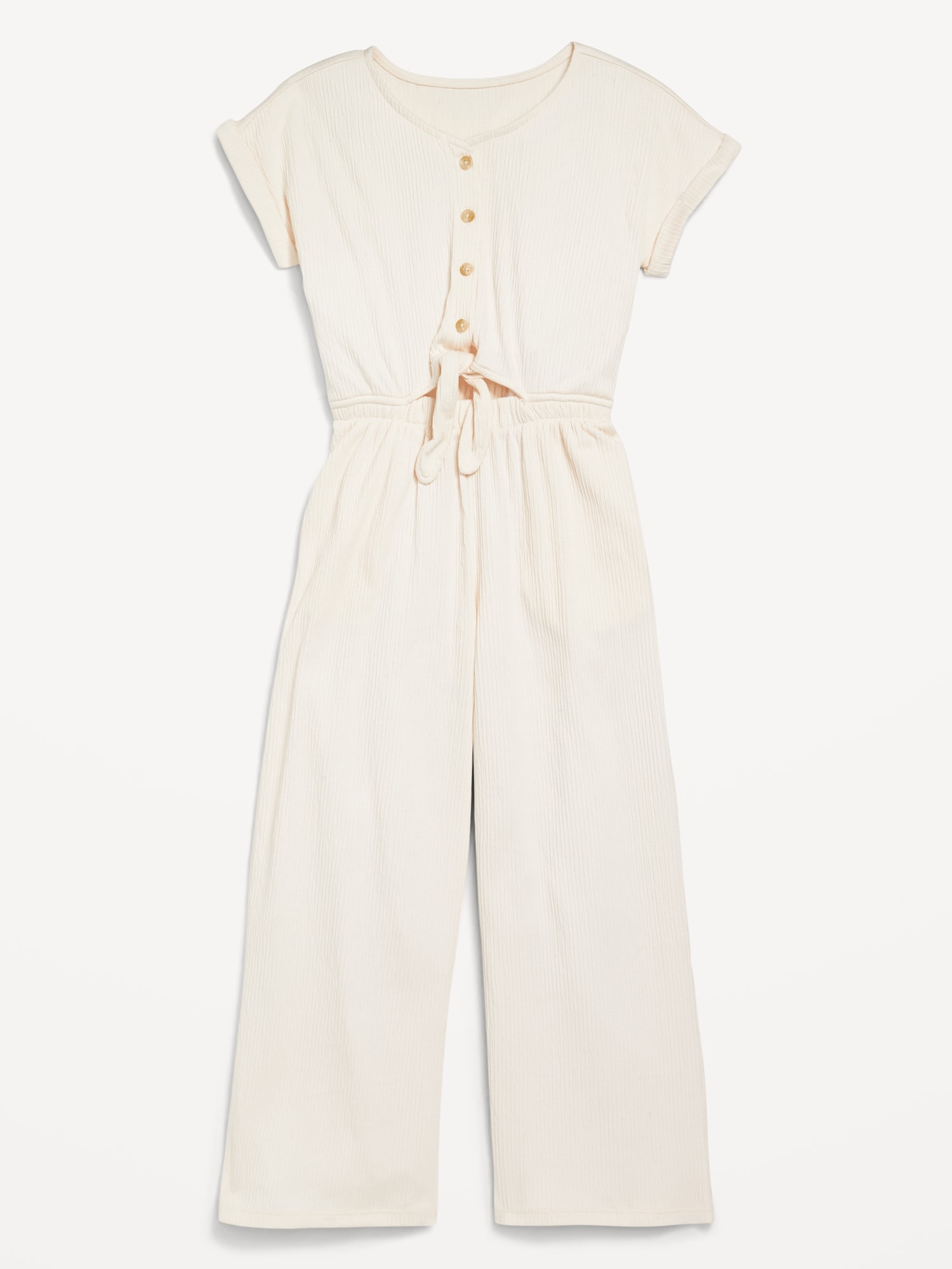Short-Sleeve Button-Front Tie-Knot Jumpsuit for Girls