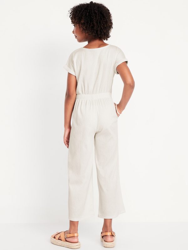 Short-Sleeve Button-Front Tie-Knot Jumpsuit for Girls