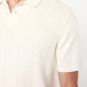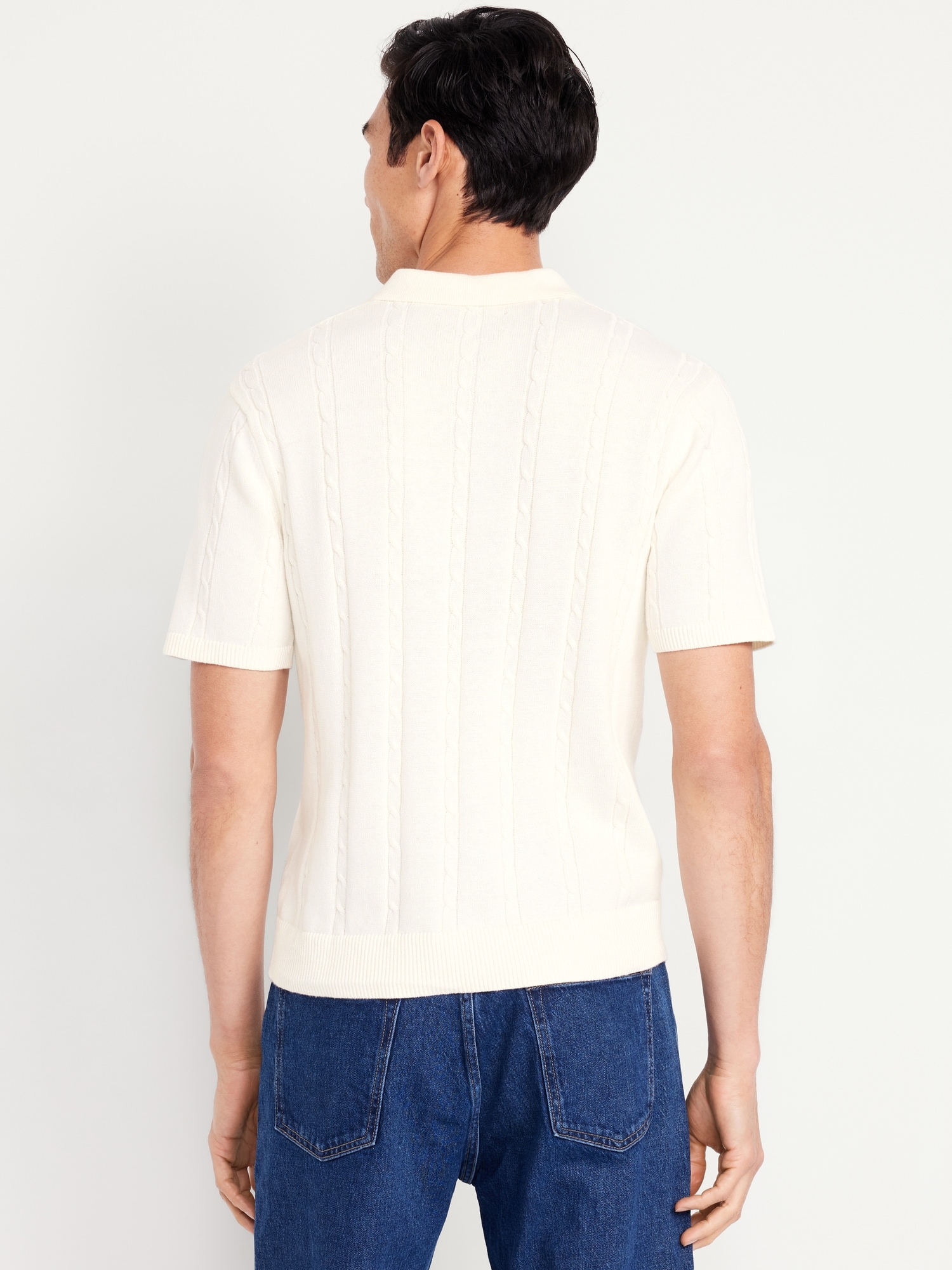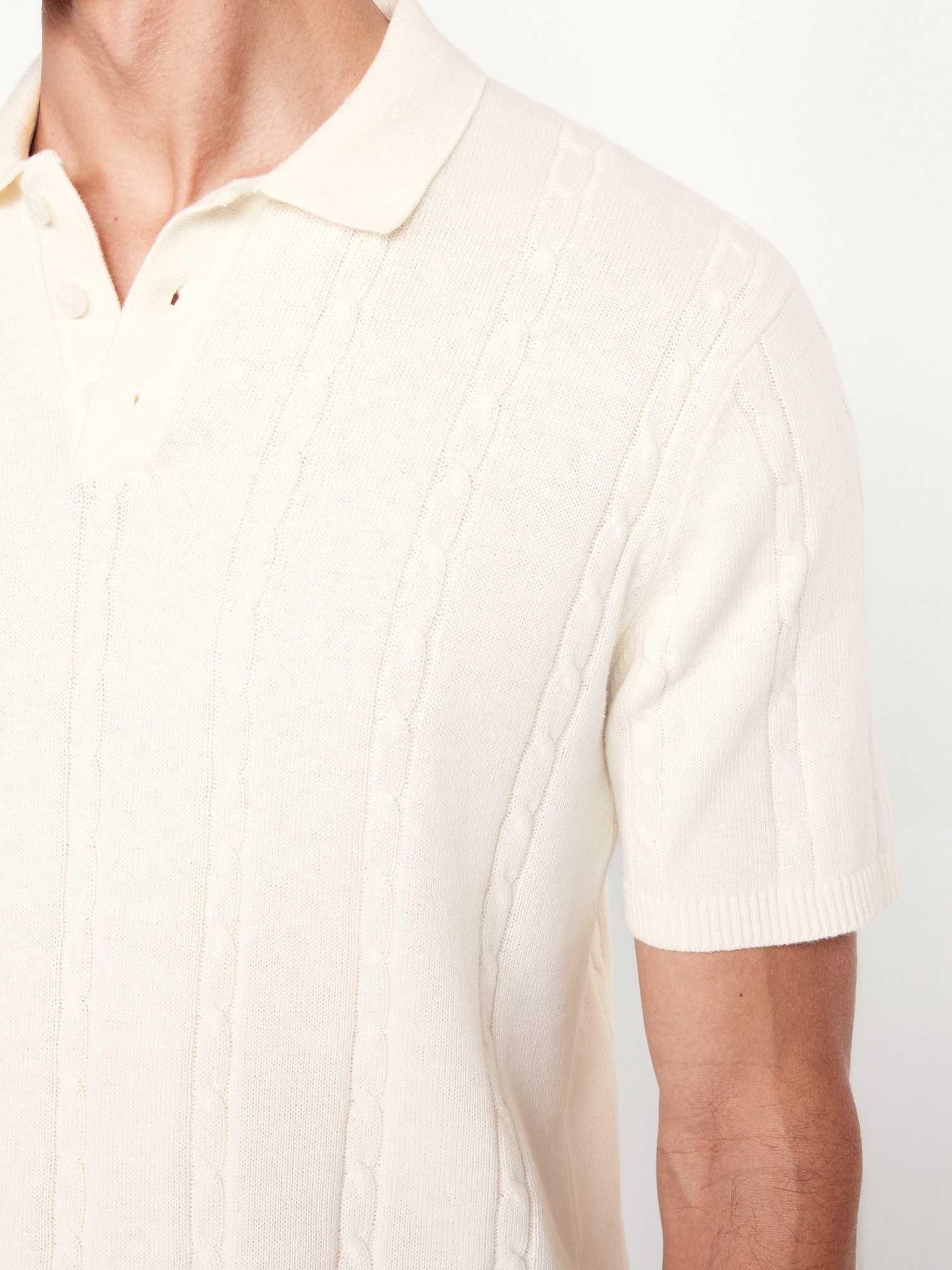 Short-Sleeve Cable-Knit Polo: spread collar, short sleeves, buttoned placket, pullover style, #802042