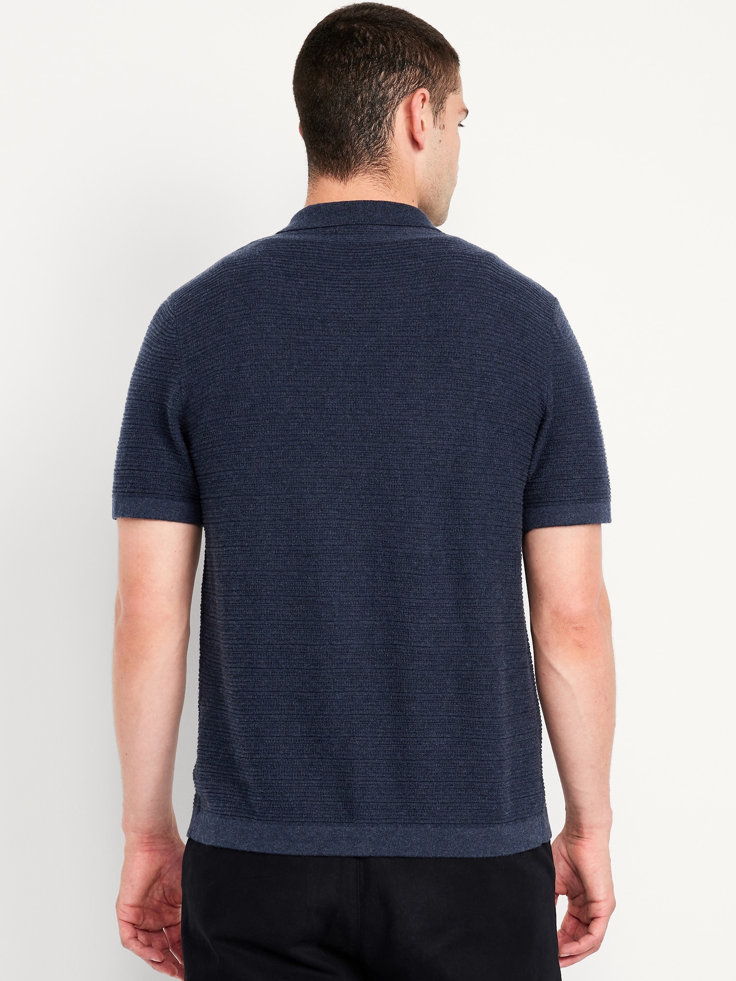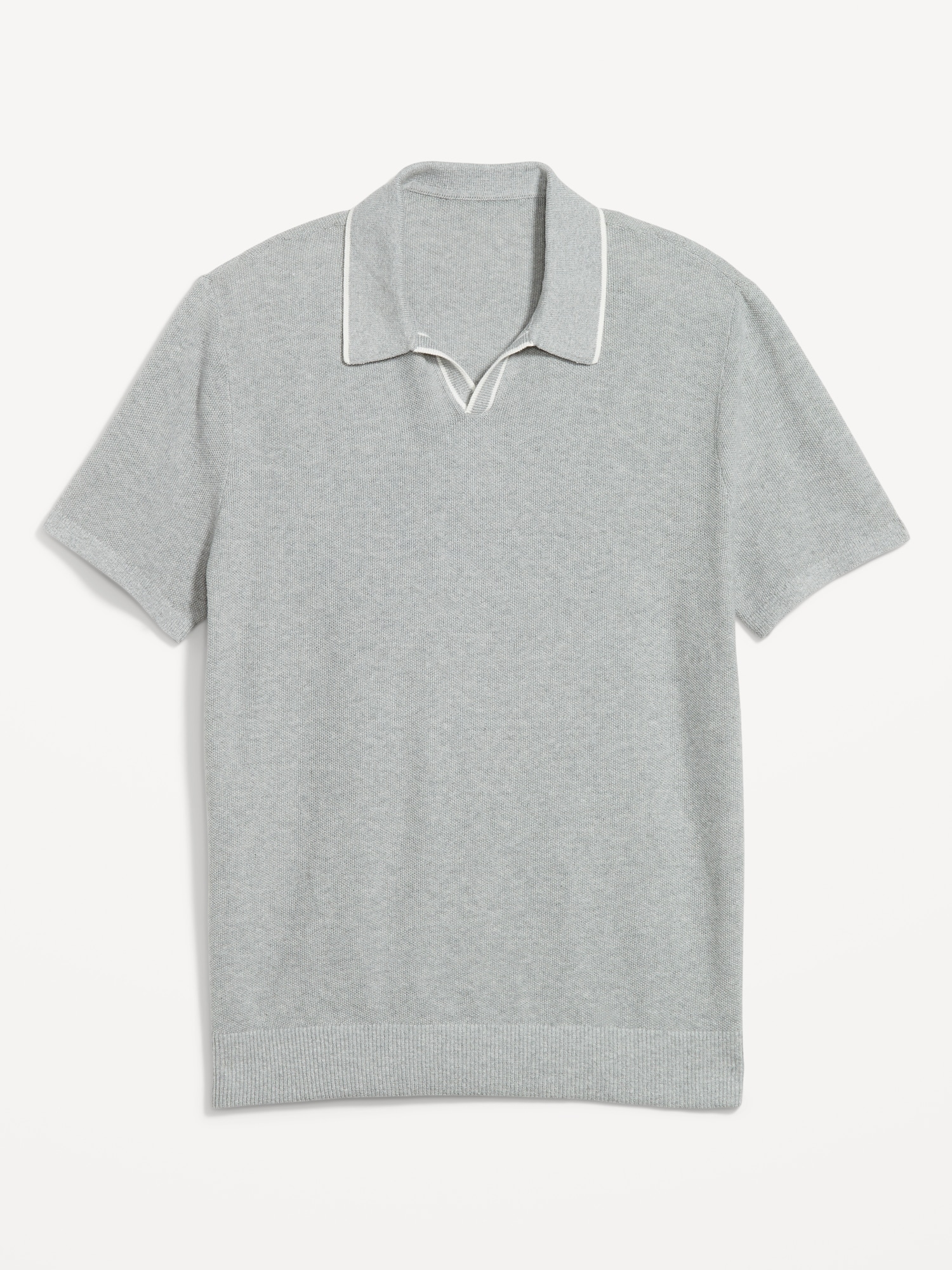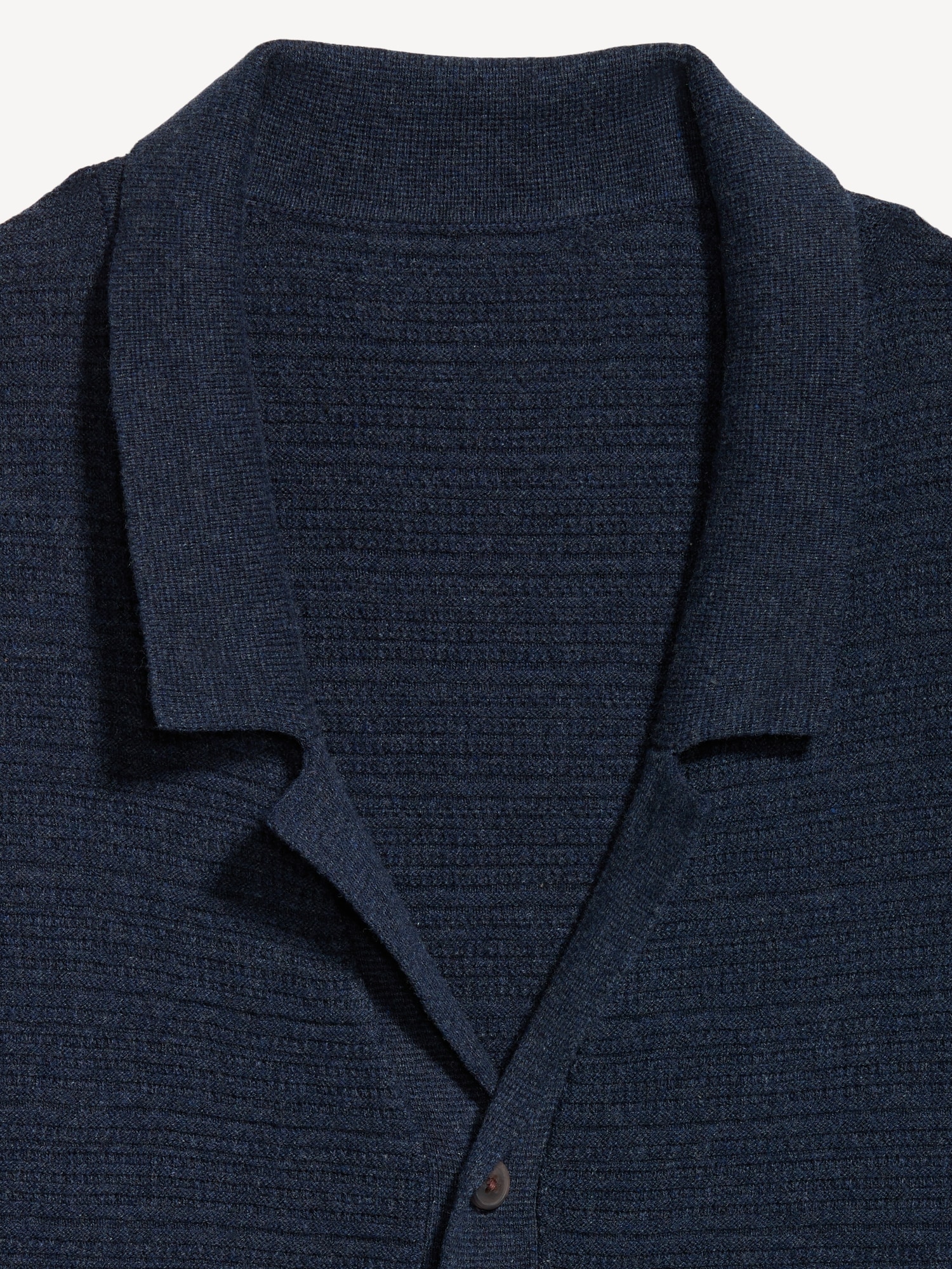 Short-Sleeve Camp Sweater: spread collar, short sleeves, buttoned placket, pullover style, #802042