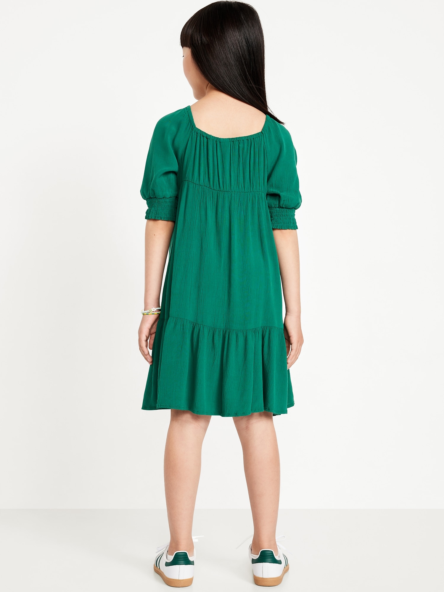Short-Sleeve Crinkle Crepe Swing Dress for Girls