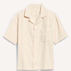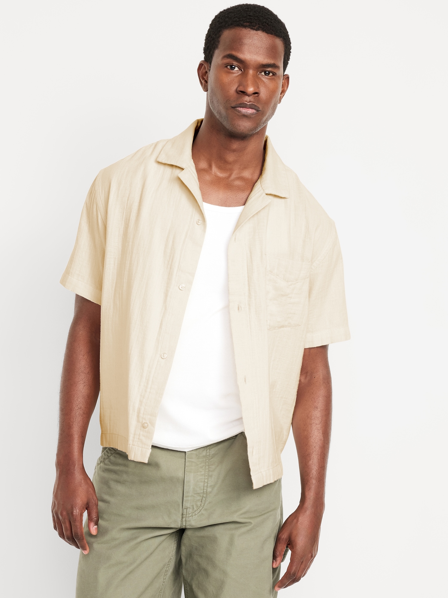 Short-Sleeve Cropped Heavyweight Camp Shirt
