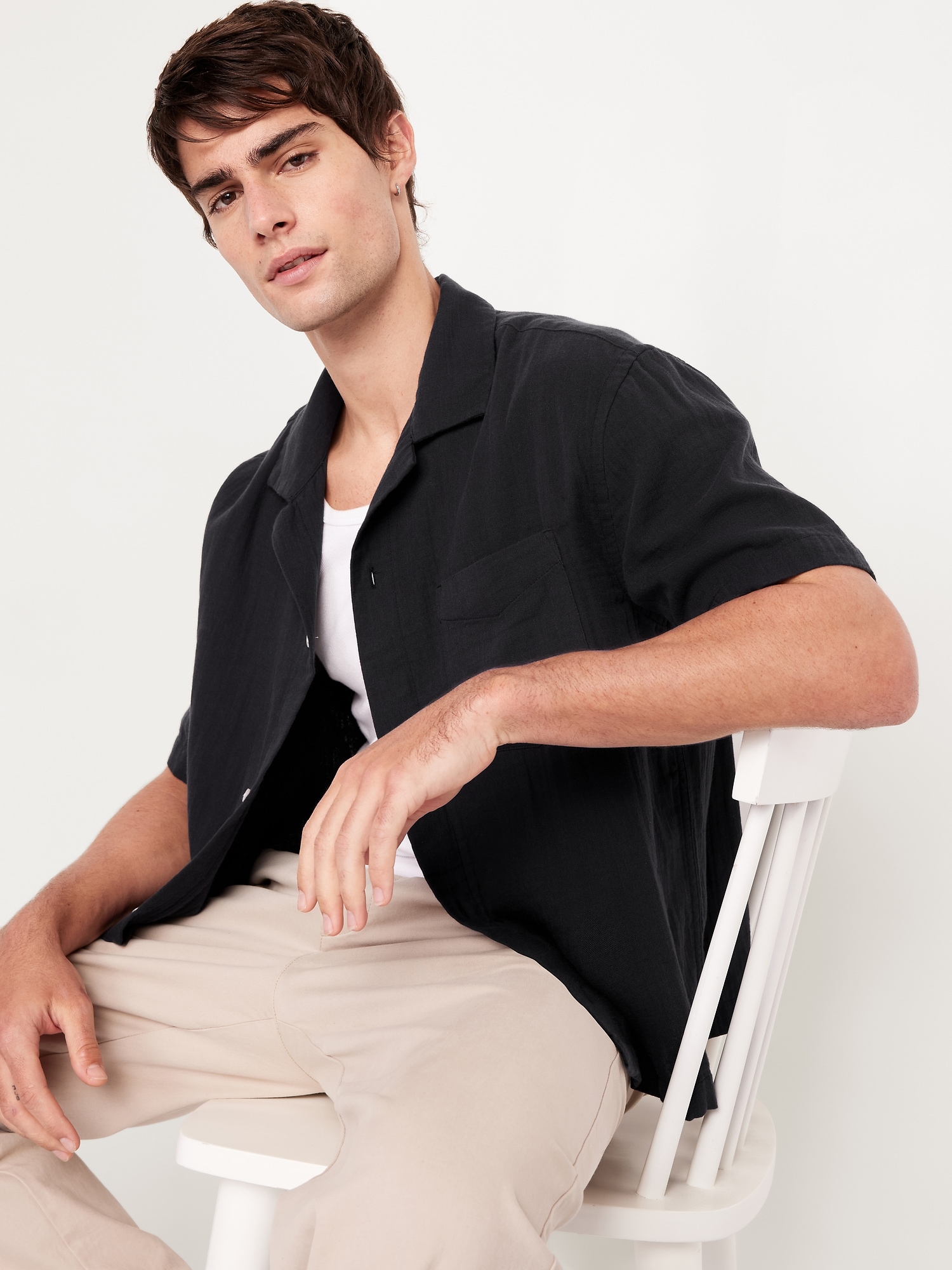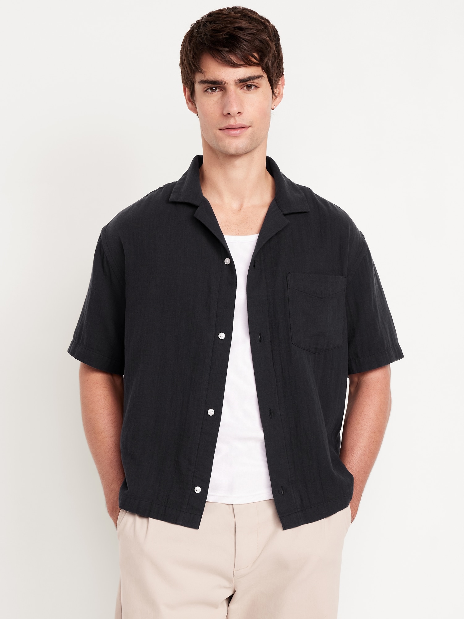 Short-Sleeve Cropped Heavyweight Camp Shirt
