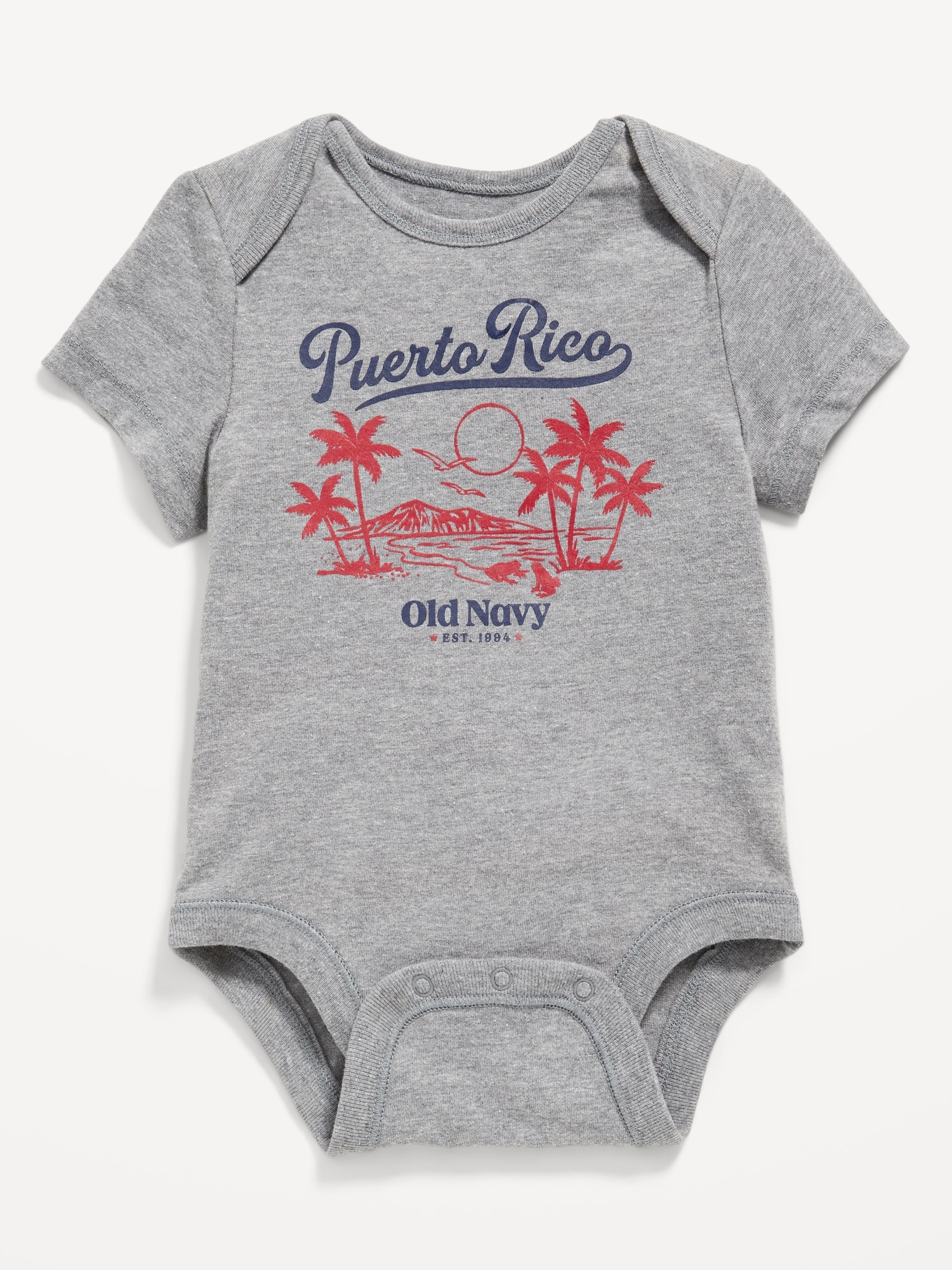 Short-Sleeve Graphic Bodysuit for Baby: envelope neckline, short sleeves, graphic at front, snaps along inseam, #827063