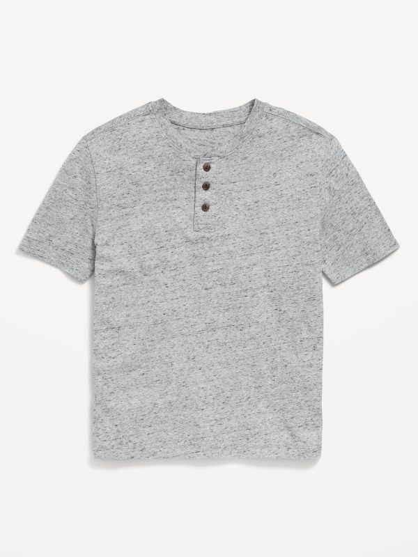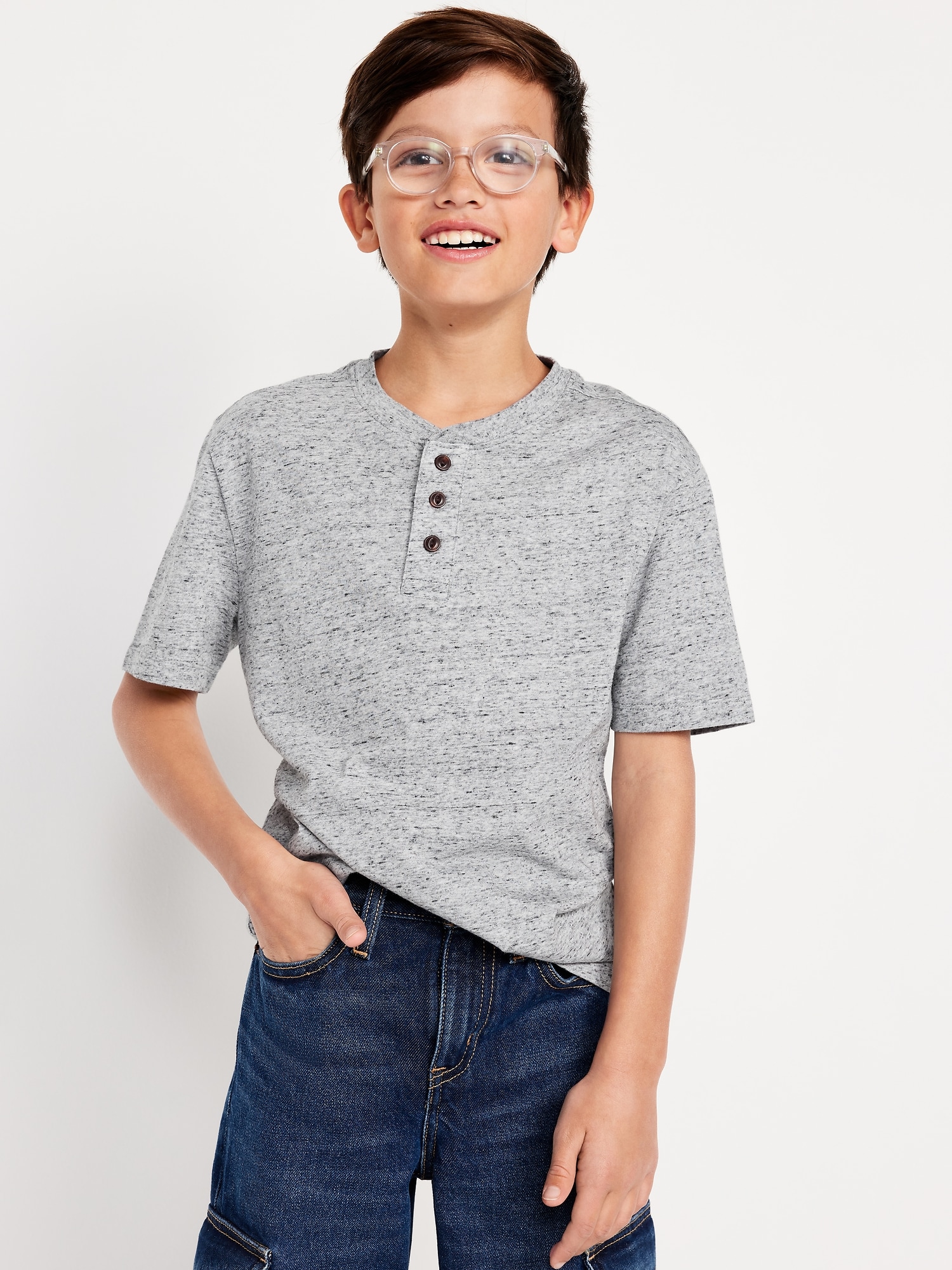 Short-Sleeve Henley T-Shirt for Boys: crew neck, short raglan sleeves, three-button henley placket, color block, #756921
