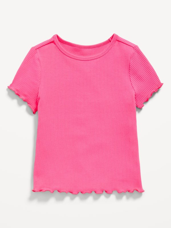 Short-Sleeve Lettuce-Edge Ribbed T-Shirt for Toddler Girls