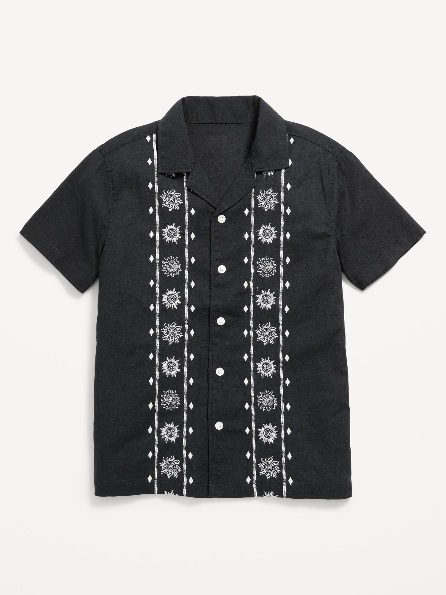 Short-Sleeve Linen-Blend Embroidered Shirt for Boys