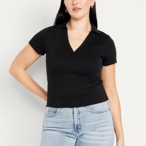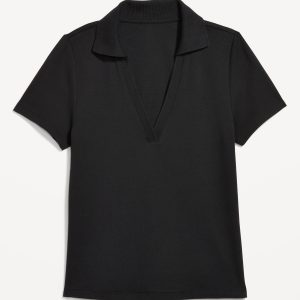Short-Sleeve Polo: spread v-neck collar, short sleeves, striped print, #802261