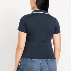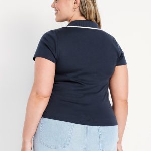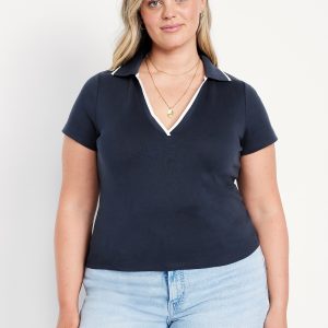 Short-Sleeve Polo: spread v-neck collar, short sleeves, striped print, #802261