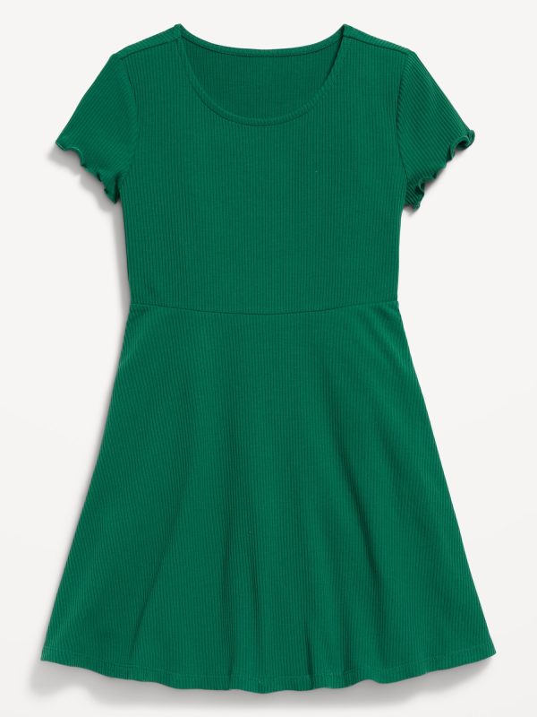 Short-Sleeve Ribbed Fit and Flare Dress for Girls