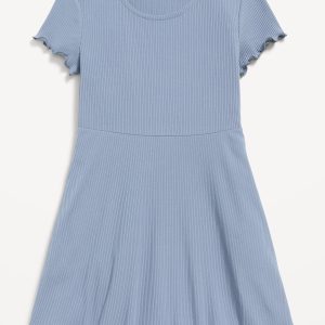Short-Sleeve Ribbed Fit and Flare Dress for Girls