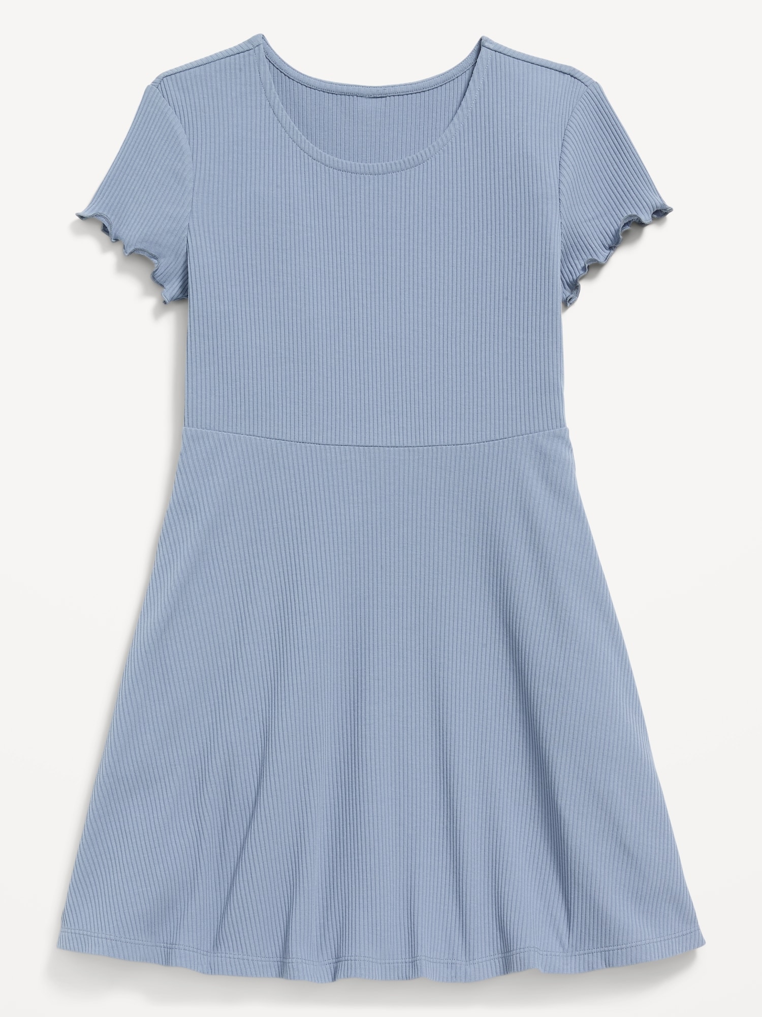 Short-Sleeve Ribbed Fit and Flare Dress for Girls