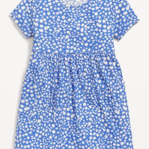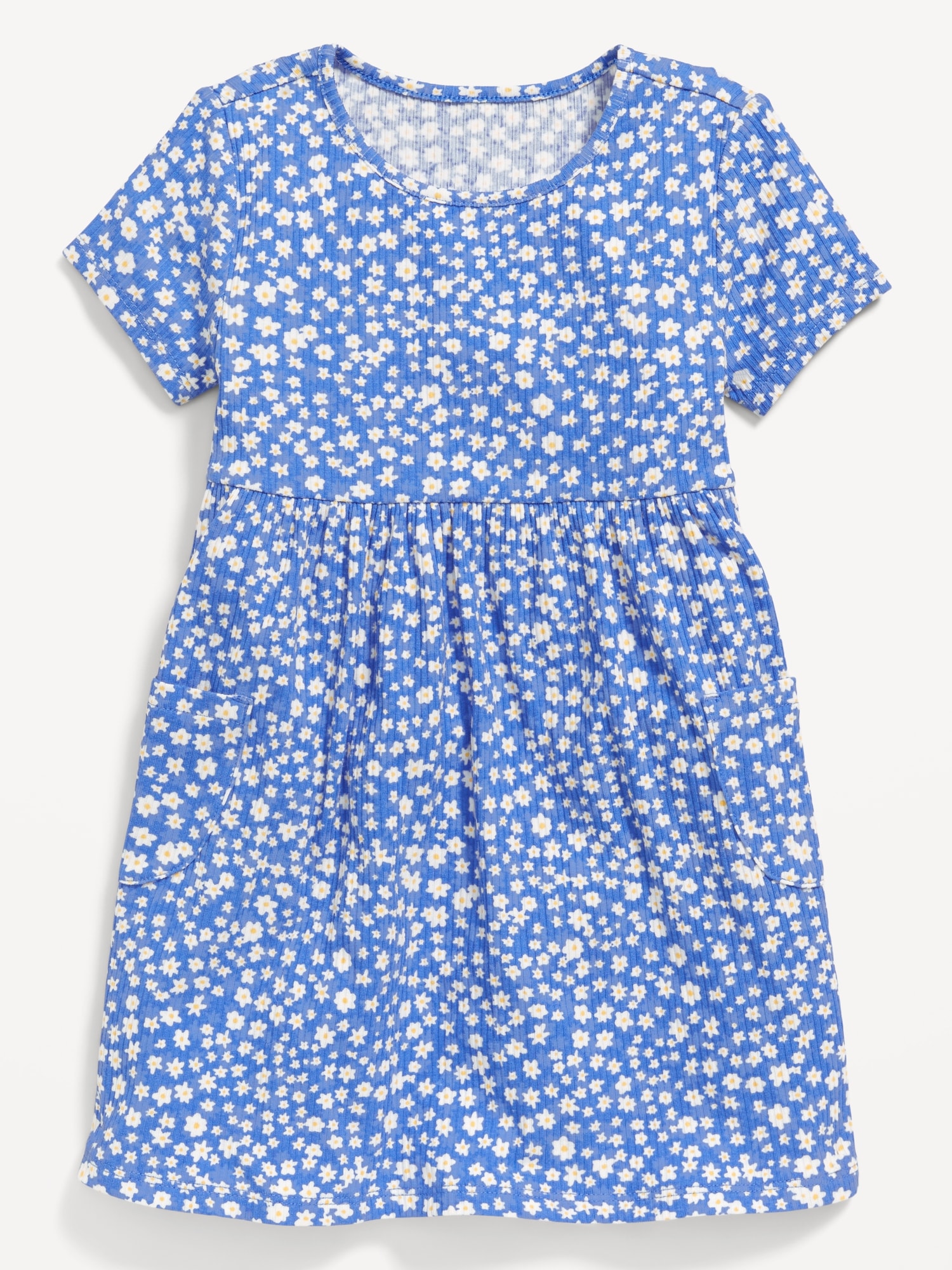 Short-Sleeve Ribbed Fit and Flare Pocket Dress for Toddler Girls: Mix Match Go Productcrew neck, short sleeves, seamed waist, flared skirt, patch pockets at each side, all-over print, #586087