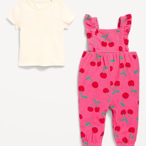 Short-Sleeve Ribbed T-Shirt and Corduroy Jumpsuit Set for Baby