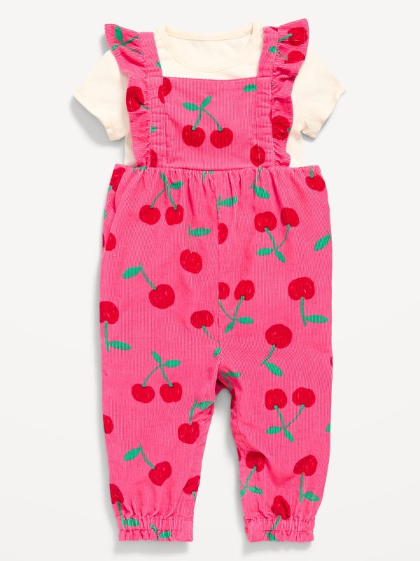 Short-Sleeve Ribbed T-Shirt and Corduroy Jumpsuit Set for Baby
