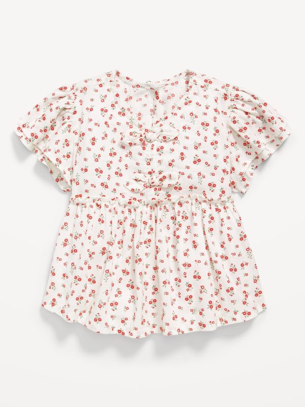 Short-Sleeve Ruffled Bow Top for Toddler Girls: v neck, short flutter sleeves, keyhole cutout at nape, seamed ruffled waist, decorative bows at front, flared hem, #804970