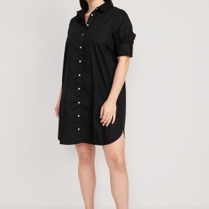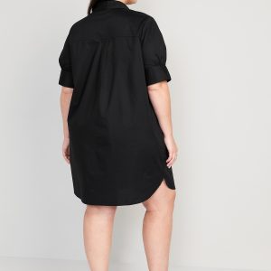 Short-Sleeve Shirt Dress: spread collar, elbow-length sleeves, full-button front, patch pocket, #796144