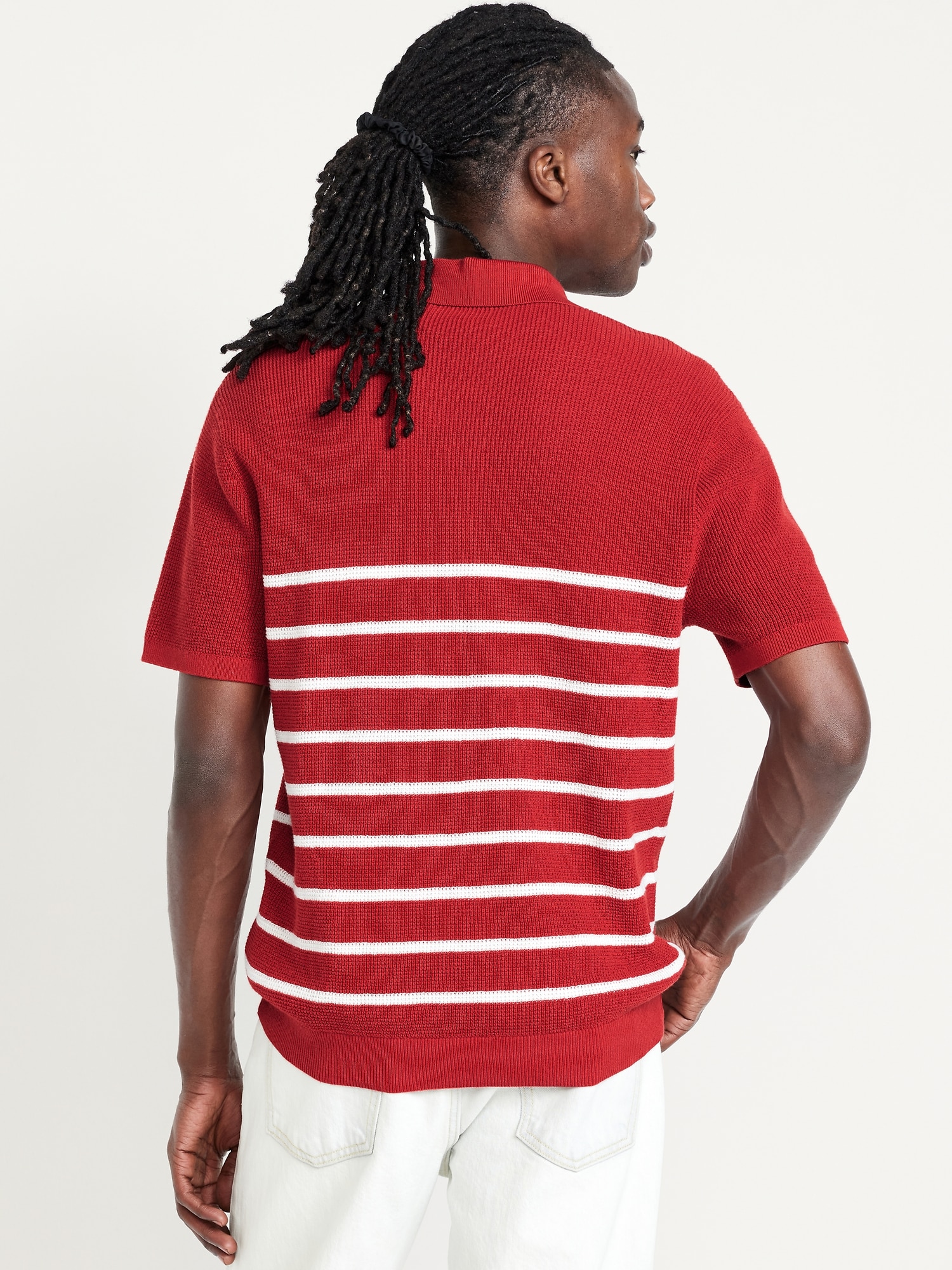Short-Sleeve Sweater-Knit Polo: spread collar, short sleeves, buttoned placket, pullover style, #802042