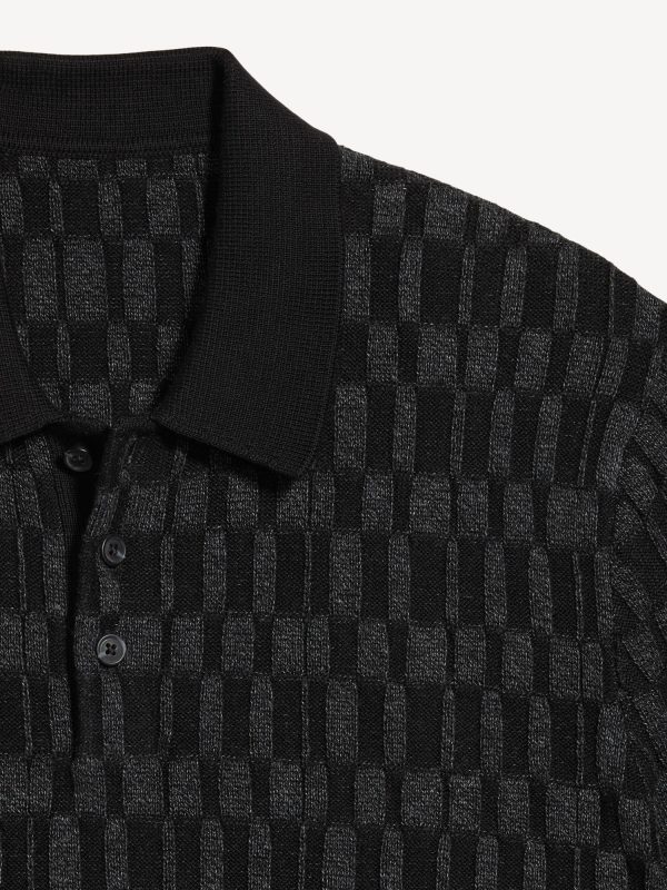 Short-Sleeve Sweater-Knit Polo: spread collar, short sleeves, buttoned placket, pullover style, #802042